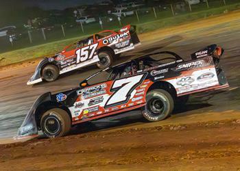 B Feature 2 (15 Laps): 1. 7-Ricky Weiss[1]; 2. 10-Joseph Joiner[2]; 3. 7RR-Ross Robinson[3]; 4. 1C-Kenny Collins[4]; 5. 6JR-Parker Martin[8]; 6. 22*-GR Smith[9]; 7. 70-Jeff Smith[7]; 8. 18D-Daulton Wilson[5]; 9. 0R-Ryan Scott[13]; 10. 18P-Gray Parton[12]; 11. 15-Dean Bowen[10]; 12. 17-Tim Vance[11]; 13. (DNF) D8-Dustin Mitchell[6]; 14. (DNF) 01-Jason Garver[14]; 15. (DNF) 17SS-Brenden Smith[15]